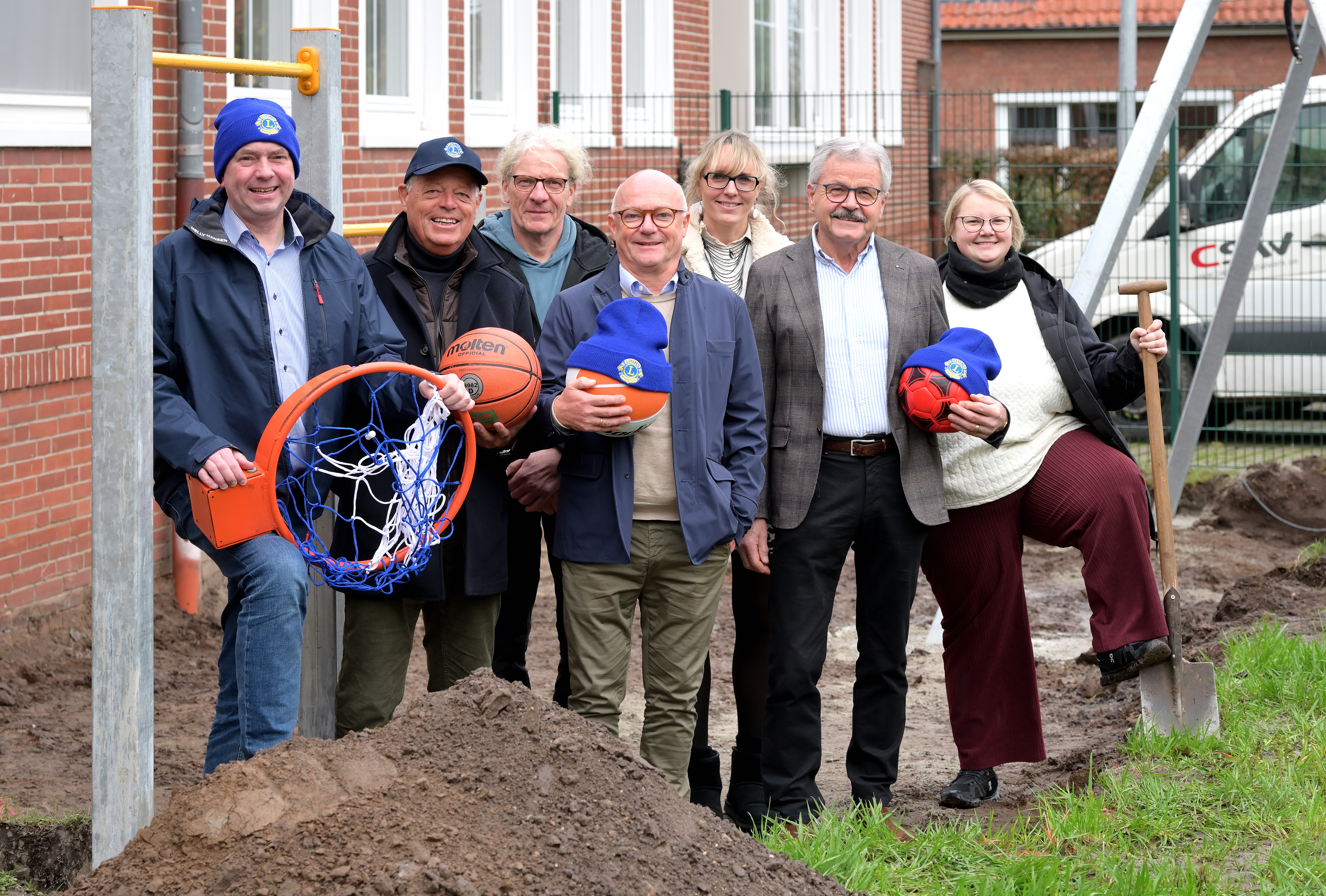 Lions-Mitglied Thorsten Diekmann erklärt beim Termin vor Ort auch den Grund der attraktiven Geschenke: Im 50. Jahr seines Bestehens initiiert der Lions Club in allen Kommunen des Landkreises Vechta jeweils eine individuelle Spende, finanziert also bis zum nächsten Sommer im Rahmen des Jubiläums unter dem Motto „Zukunft.50“ zehn Projekte für insgesamt 50.000 Euro.